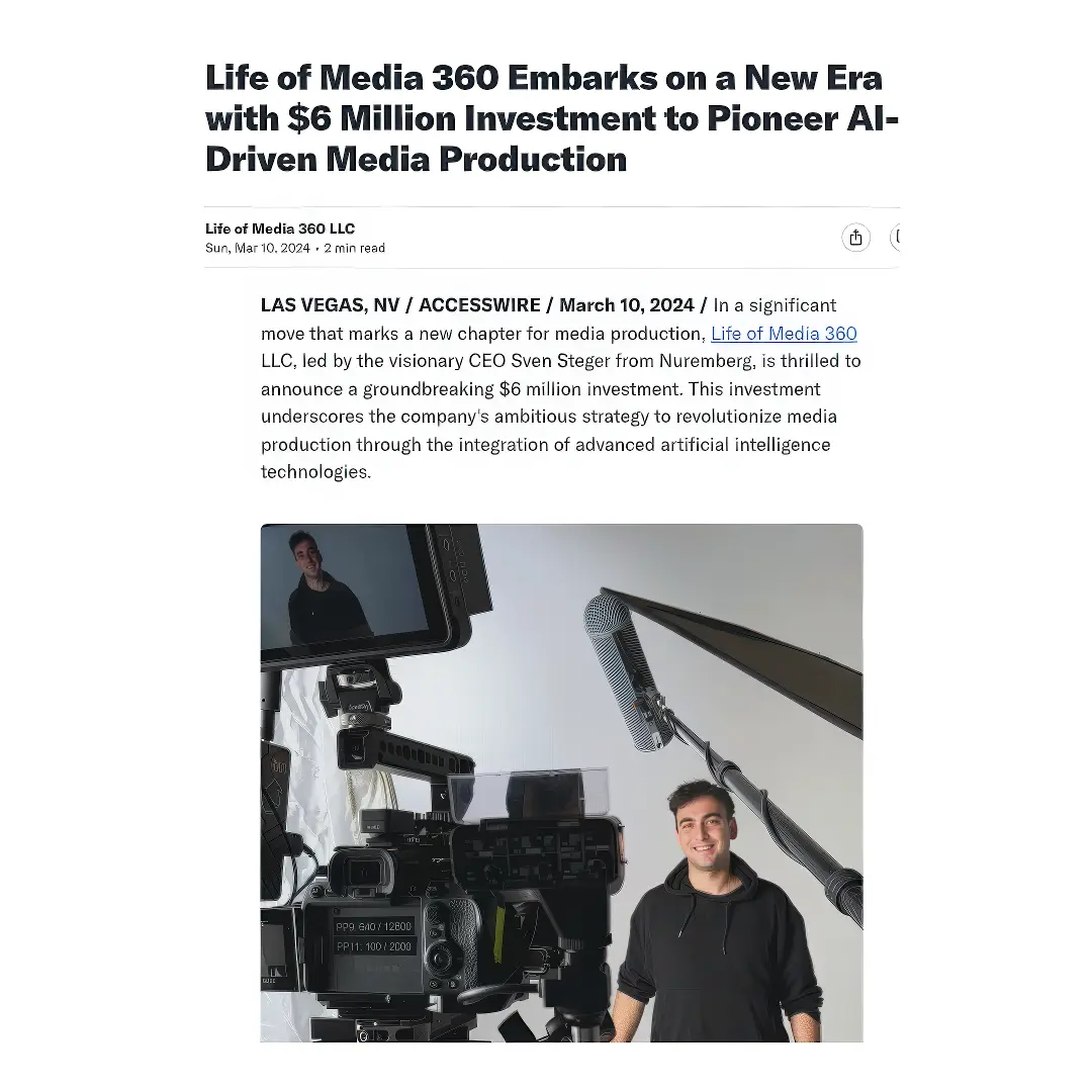 Was als Ein-Mann-Freelancer begann, wuchs Schritt für Schritt zu einem globalen Unternehmen heran, das längst weit mehr bietet als klassische Videoproduktion. 2023 folgte der nächste große Meilenstein: die Gründung von Life of Media 360 in Las Vegas – und damit die Transformation in eine internationale Full-Service-Agentur.
