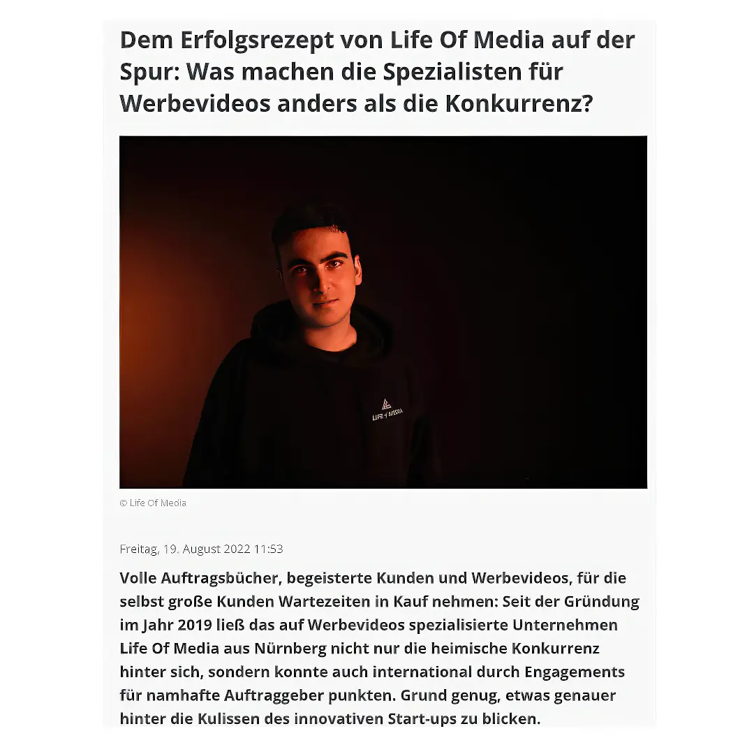 Life of Media 360 ist kein gewöhnliches Medienunternehmen – es ist eine Kreativmacht. Gegründet von Sven Steger im Jahr 2014, hat sich die Agentur von Franken bis nach Las Vegas hochgearbeitet und dabei neue Maßstäbe gesetzt. Sie erschafft Filme, Animationen und Kampagnen, die nicht nur auffallen, sondern im Kopf bleiben.